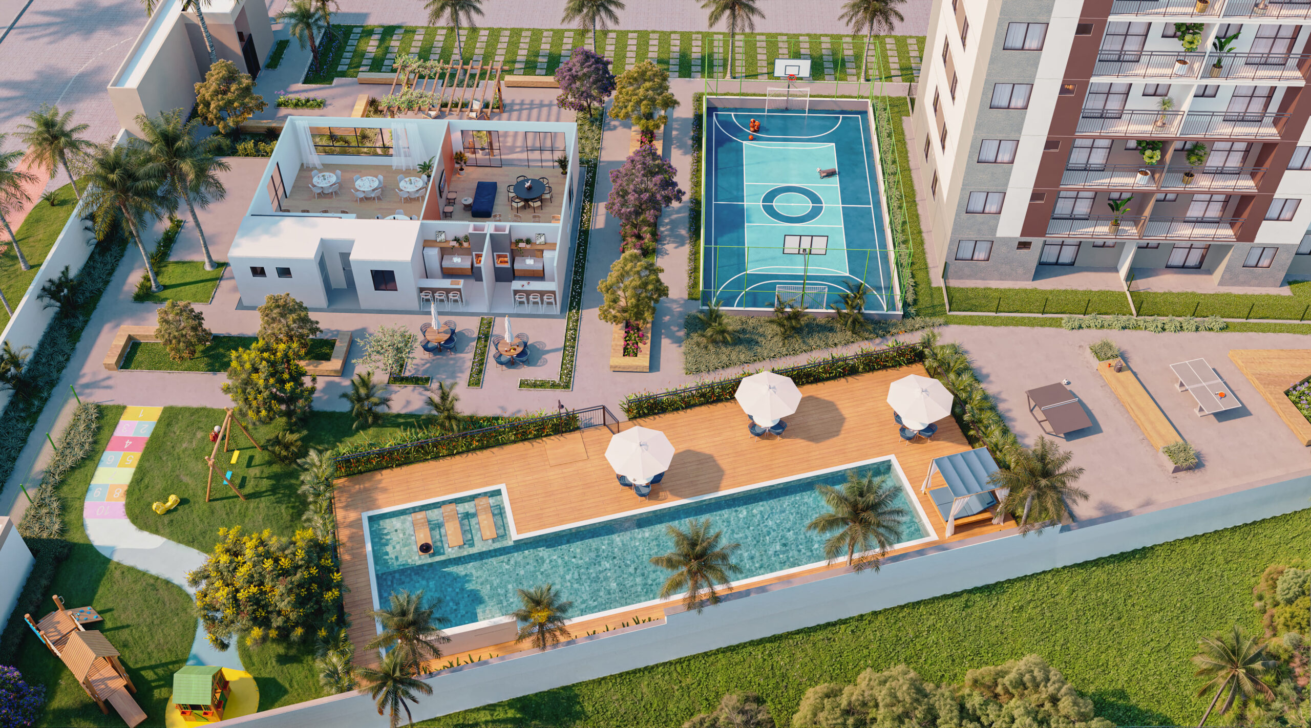 *A partir de R$ 352.137,93 referente à Unidade 208 Torre 03, com área privativa construída de 48,19 m². Preço de tabela do mês de Fevereiro de 2026. A vendedora reserva-se o direito de alterar o preço sem aviso prévio. O memorial de incorporação está registrado na matrícula nº 67.152 do Cartório do Oficio Privativo de Registro de Imóveis de Caucaia/CE, nos termos da Lei 4.591/64., conforme R.04/67.152. As imagens são meramente ilustrativas, devendo ser considerado detalhamento no memorial descritivo.